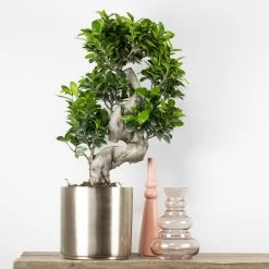 2x Ficus Microcarpa ‘ginseng’ En Forme De S – Bonsaï – Plante D’intérieur – ⌀22 Cm – ↕60-70 Cm