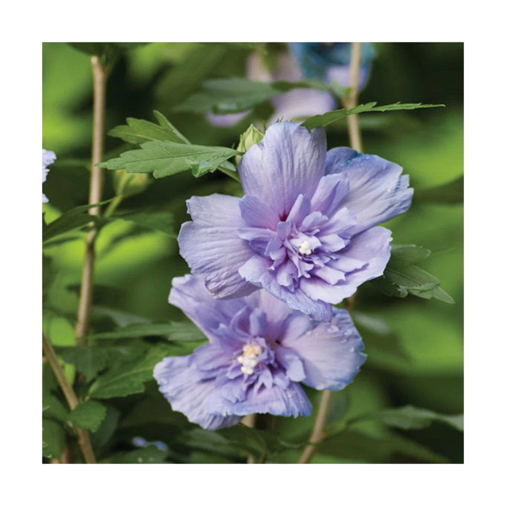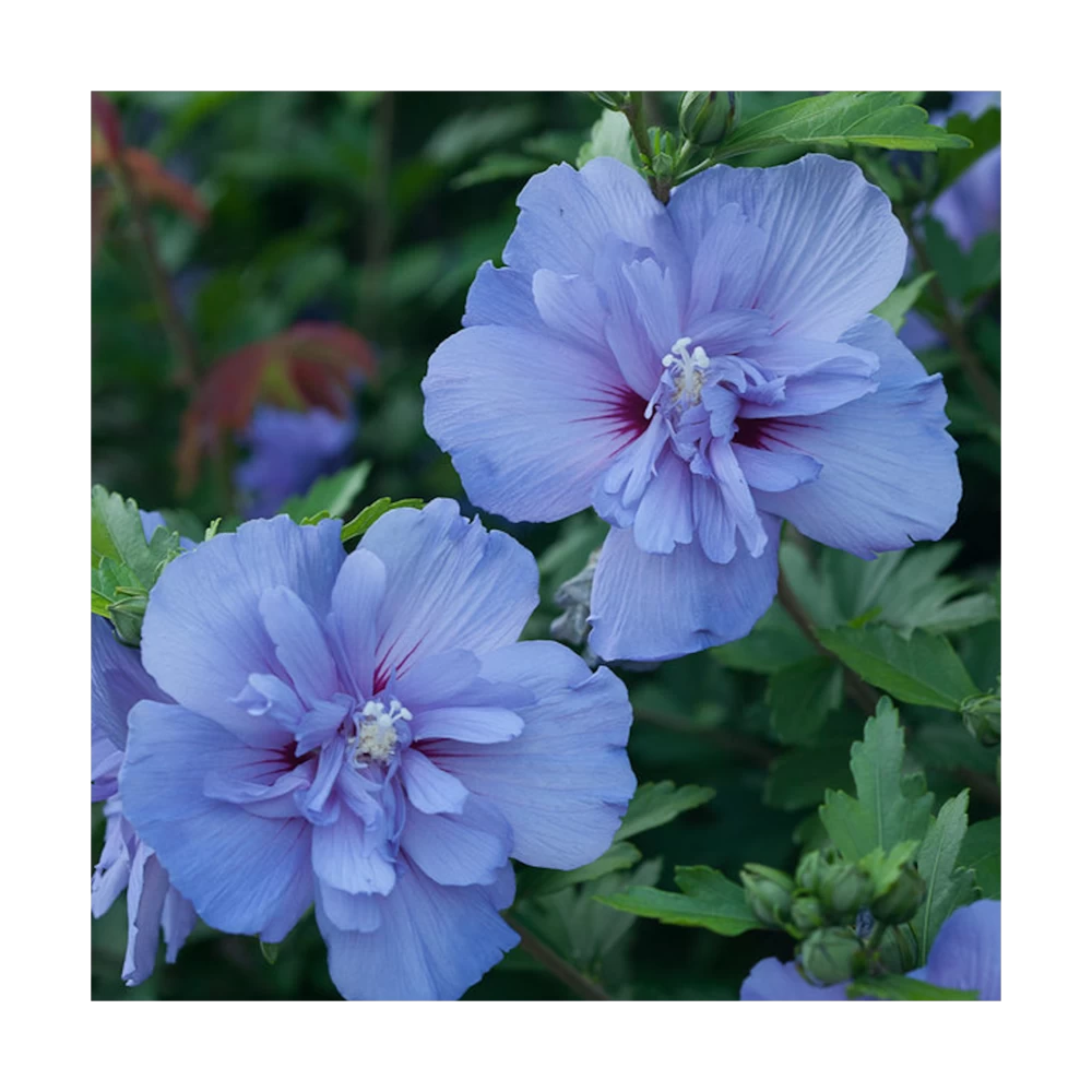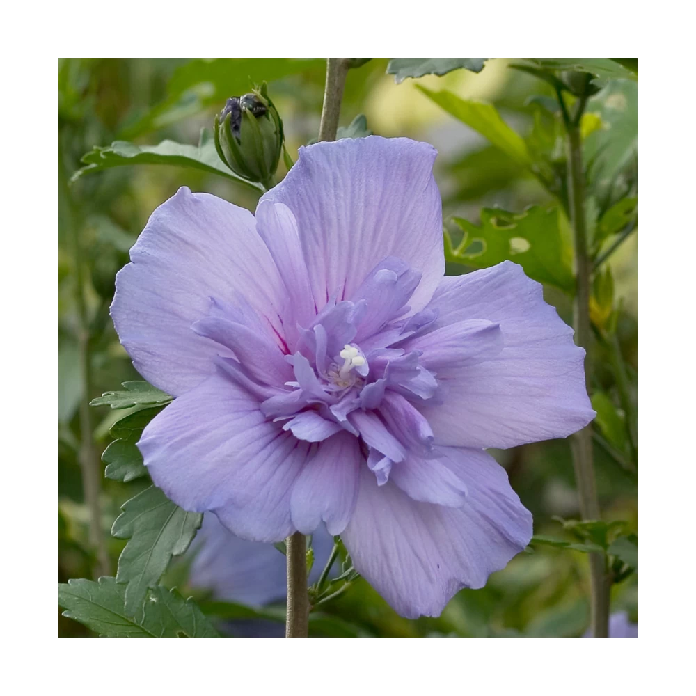 l’hibiscus blue chiffonÂź est un petit arbuste atteignant Ă taille adulte 2 mĂštres de haut. Sa floraison bleue double, tout l’Ă©tĂ© en fait un arbuste indispensable dans vos massifs ou en isoler au jardin. Au fil des annĂ©es cette plante restera trapue est compacte si elle est taillĂ©e aprĂšs la floraison.