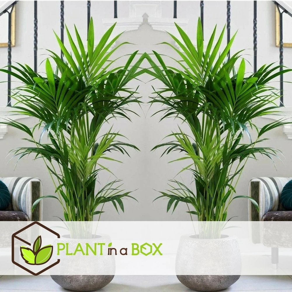 Le palmier kentia, Ă©galement connu sous le nom de howea forsteriana, est un palmier Ă croissance relativement lente. Le palmier est originaire d’ocĂ©anie et est trĂšs populaire de nos jours comme plante d’intĂ©rieur. Cette grande plante apportera sans aucun doute une atmosphĂšre exotique Ă votre bureau ou Ă votre salon. Le forsteriana est la seule espĂšce de kentia qui est cultivĂ©e sous notre climat. Il appartient Ă la famille des palmiers. Il a une croissance gracieuse et des feuilles souples d’un beau vert foncĂ© brillant. C’est Ă©galement l’une des plus anciennes plantes d’intĂ©rieur. La plante est livrĂ©e avec une hauteur de 130-140cm (mesurĂ©e y compris le pot).