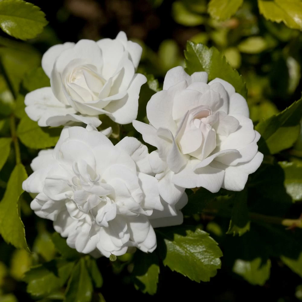 Abondance de petites fleurs blanc pur d’environ 50 pĂ©tales.floraison tardive, petit feuillage vert foncĂ© brillant. RĂ©sistance exceptionnelle aux maladies et au froid.