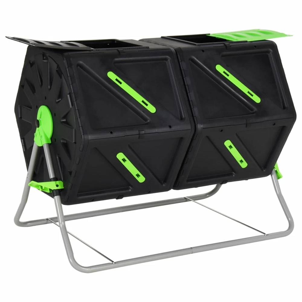 Réduisez vos déchets de jardin et de cuisine à tout moment de l’année grâce à ce composteur à tambour et produisez votre propre compost que vous pourrez utiliser comme engrais organique pour vos plantes. Matériau durable : le conteneur à compost est fabriqué en pp. Le polypropylène (pp) est un plastique populaire qui est léger, solide et résistant aux chocs.pieds robustes : les pieds en métal de cette poubelle à compost assurent la robustesse et la stabilité.conception à culbutage : la conception de culbutage de ce composteur de déchets augmente la productivité du mélange. Et grâce aux barres de mélange internes qui accélèrent le processus de décomposition, vous pouvez vous attendre à un compost riche et fertile en quelques semaines seulement !composteur à deux chambres : deux bacs à compost rotatifs indépendants profitent du compostage par lots, ce qui vous permet de changer continuellement de côté tandis que l’autre permet d’ajouter de nouveaux déchets, offrant un flux ininterrompu de compost riche et sain.excellente aération : le tambour à compost est doté de trous d’aération qui permettent de mélanger beaucoup d’oxygène au compost.utilisation facile : le système de tambour efficace est le moyen simple d’obtenir un compost parfaitement cuit sans avoir à creuser, retourner et mélanger à la main. Tout ce que vous avez à faire est d’ouvrir la porte coulissante, d’ajouter vos déchets et de tourner la poignée tous les deux jours environ. Bon à savoir :pour faciliter au maximum le montage, chaque produit est livré avec des instructions.